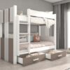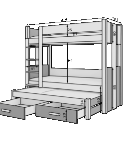A kétágyas emeletes ágy ARTA tökéletes megoldás helymegtakarításra kisebb Gyermekszobákban. A bútor lépcsős létrával rendelkezik és két tágas, funkcionális fiókkal a ágyneműtároláshoz. A matracok nem tartoznak az ágyhoz.