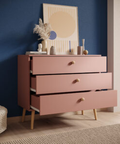 Fedezze fel a Beni komódot, amely a funkcionalitást egyedülálló stílussal ötvözi! A skandináv minimalizmus és a boho részletek, mint a fa lábak és a kötél formájú fogantyúk, lehetővé teszik, hogy ez a bútor tökéletesen illeszkedjen bármilyen belső térbe – a nappalitól a hálószobáig. A tágas fiókok halk záródó mechanizmussal és tartós, magas minőségű anyagokból készült konstrukcióval biztosítják a kényelmet és hosszú élettartamot. Hozza létre a meleg, stílusos teret ezzel az egyedülálló komóddal, és fedezze fel a teljes kollekciót!