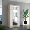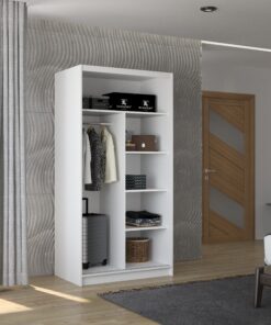 A NEVIO tolóajtós szekrény tükörrel tökéletes megoldás a tér rendezésére. A bútor tágas polcokkal és ruhásszárítóval van felszerelve, ahol fel tudod akasztani ruháidat, öltönyeidet, külső ruházatodat vagy ingeidet. Az előlapján elhelyezett tükrök optikailag nagyobbá teszik a teret. A tolóajtós kialakításnak köszönhetően nem szükséges külön helyet szánni az ajtónyitásra, így tökéletes megoldás kis szobák vagy keskeny előszobák számára.