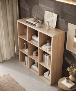 A Cleo VI könyvespolc egy funkcionális és stílusos bútordarab, amely a modern designt maximális befogadóképességgel ötvözi. A kilenc szimmetrikus polccal ellátott négyzetes kialakításnak köszönhetően ideális a kedvenc tárgyak tárolására és bemutatására egyaránt. A klasszikus színösszeállítás – fehér és sonoma tölgy – elegáns jelleget kölcsönöz a bútornak, amely tökéletesen illeszkedik a legkülönbözőbb belső terekbe, a minimalistától a klasszikusig. Átgondolt elrendezésének köszönhetően a Cleo V könyvespolc rengeteg helyet kínál könyveknek, dekorációknak, mappáknak, növényeknek vagy szerveződobozoknak. Univerzális stílusának köszönhetően tökéletesen illik a nappaliba, hálószobába, irodába vagy gyerekszobába. A könyvespolc tartós anyagokból készült, így biztosítva, hogy strapabíró és ellenálló legyen a mindennapi használat során. Az egyszerű, geometrikus kialakítás nemcsak a rendszerezésben segít, hanem esztétikus rendet is hoz bármely helyiségbe. Válassza a Cleo V könyvespolcot, ha értékeli a tágasságot, a funkcionalitást és az időtlen stílust!
