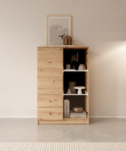 Az Evi vitrin egy különleges belsőépítészeti elem, amely modern eleganciát és egyszerűséget sugároz. Az „artisan” színe finoman hangsúlyozza a kifinomult jellegét, utalva a precíz kivitelezésre és a kézi kidolgozásra jellemző egyedi megjelenésre. Az erős üvegből készült vitrin nemcsak kiváló bemutatást nyújt a kiállított tárgyaknak, hanem subtilis eleganciát is hozzáad a térhez. Tartozik hozzá LED világítás is.