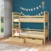 A kétágyas emeletes ágy ARTA tökéletes megoldás helymegtakarításra kisebb Gyermekszobákban. A bútor lépcsős létrával rendelkezik és két tágas, funkcionális fiókkal a ágyneműtároláshoz. A matracok nem tartoznak az ágyhoz.