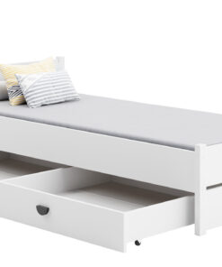 A kétágyas emeletes ágy ARTA tökéletes megoldás helymegtakarításra kisebb Gyermekszobákban. A bútor lépcsős létrával rendelkezik és két tágas, funkcionális fiókkal a ágyneműtároláshoz. A matracok nem tartoznak az ágyhoz.