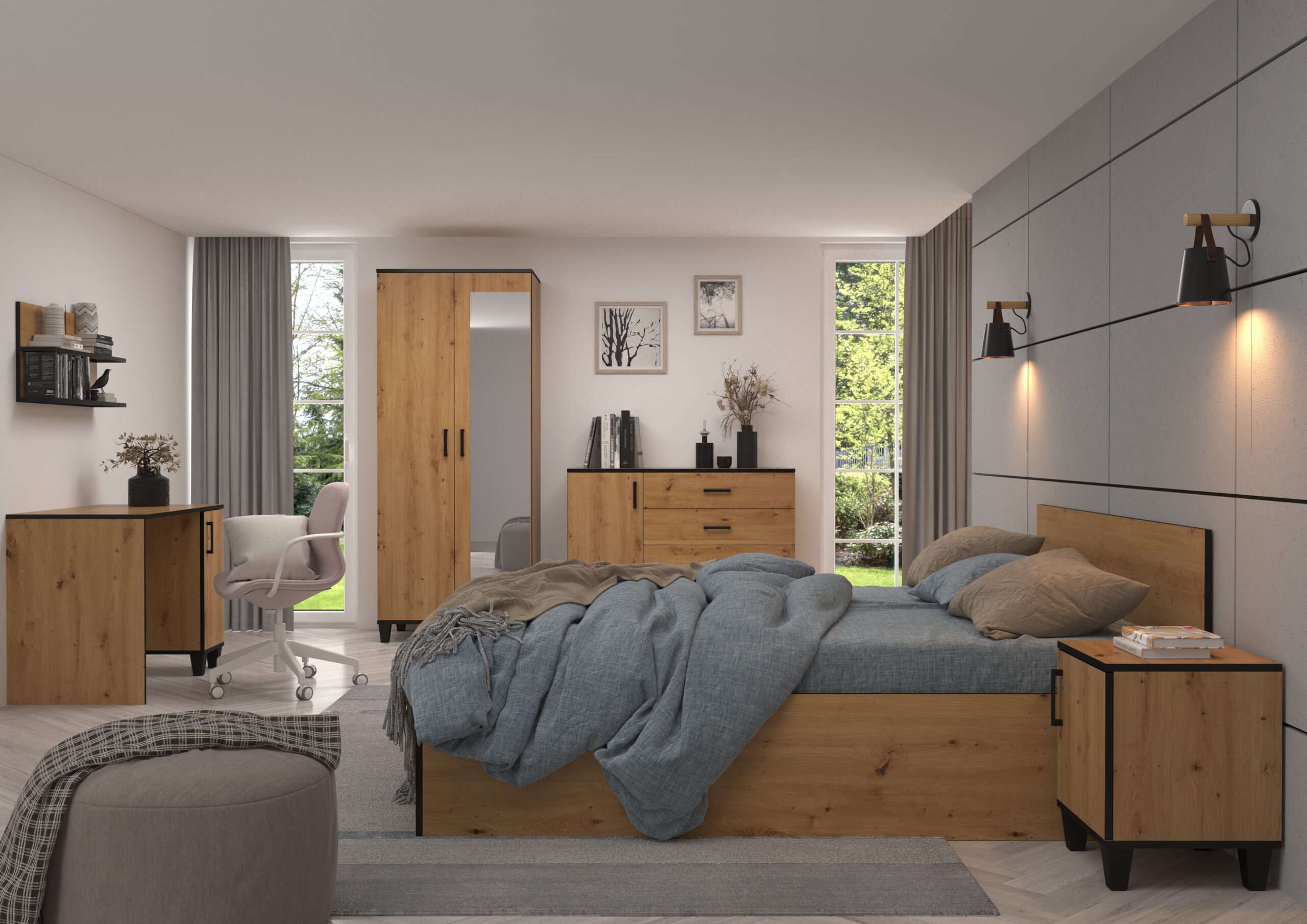 A kétágyas emeletes ágy ARTA tökéletes megoldás helymegtakarításra kisebb Gyermekszobákban. A bútor lépcsős létrával rendelkezik és két tágas, funkcionális fiókkal a ágyneműtároláshoz. A matracok nem tartoznak az ágyhoz.