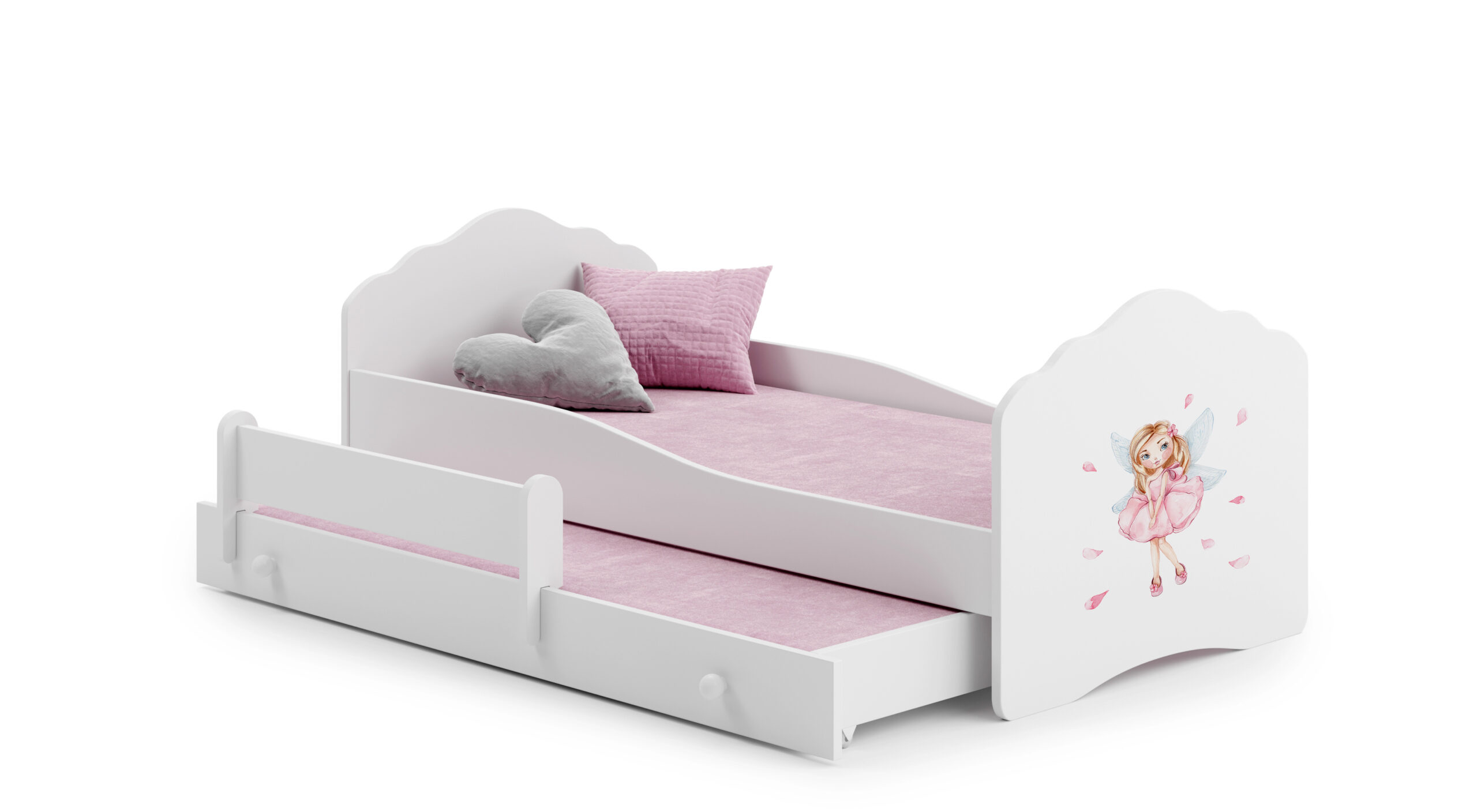 Kétszemélyes ágy a CASIMO II kollekcióból egyszerű formával, kihúzható ágyneműtartóval, amely alvás funkcióval rendelkezik, kiváló választás két testvér szobájába. Tökéletes megoldás váratlan vendégek érkezése esetén is. A számos grafikai választéknak köszönhetően könnyedén kiválaszthatod a gyermeked szenvedélyének leginkább megfelelő modellt. A gyártási folyamat során környezetbarát vízbázisú festékeket használnak, amelyek biztonságosak és ellenállóak a mechanikai sérülésekkel szemben. Ezenkívül az ágy nem rendelkezik éles sarkokkal, a grafika pedig laminálással védett. További előnye a cipzáras matrac huzata, amely könnyen eltávolítható és mosható. Ráadásul az ágy kiegészíthető egy biztonsági korláttal, amely biztosítja az éjszakai alvás biztonságát.