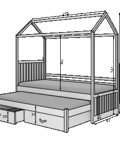 Kétszemélyes gyermekágy a JONASZEK gyűjteményből, ház alakú kialakítással, teljesíti minden gyermek álmát. Kiválóan megfelel két testvér szobájában, valamint váratlan vendégek esetén is. A modell két méretben és sok színben kapható, amelyek minden berendezéshez illenek. Az ágy két praktikus és funkcionális ágyneműtartóval rendelkezik, valamint erős és masszív fenyőfa vázzal. A matracok nem tartoznak a szettbe. Ajánljuk figyelmébe a modellt, amelyet kiegészítő védőkorláttal is felszereltek.