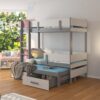 A kétágyas emeletes ágy ARTA tökéletes megoldás helymegtakarításra kisebb Gyermekszobákban. A bútor lépcsős létrával rendelkezik és két tágas, funkcionális fiókkal a ágyneműtároláshoz. A matracok nem tartoznak az ágyhoz.