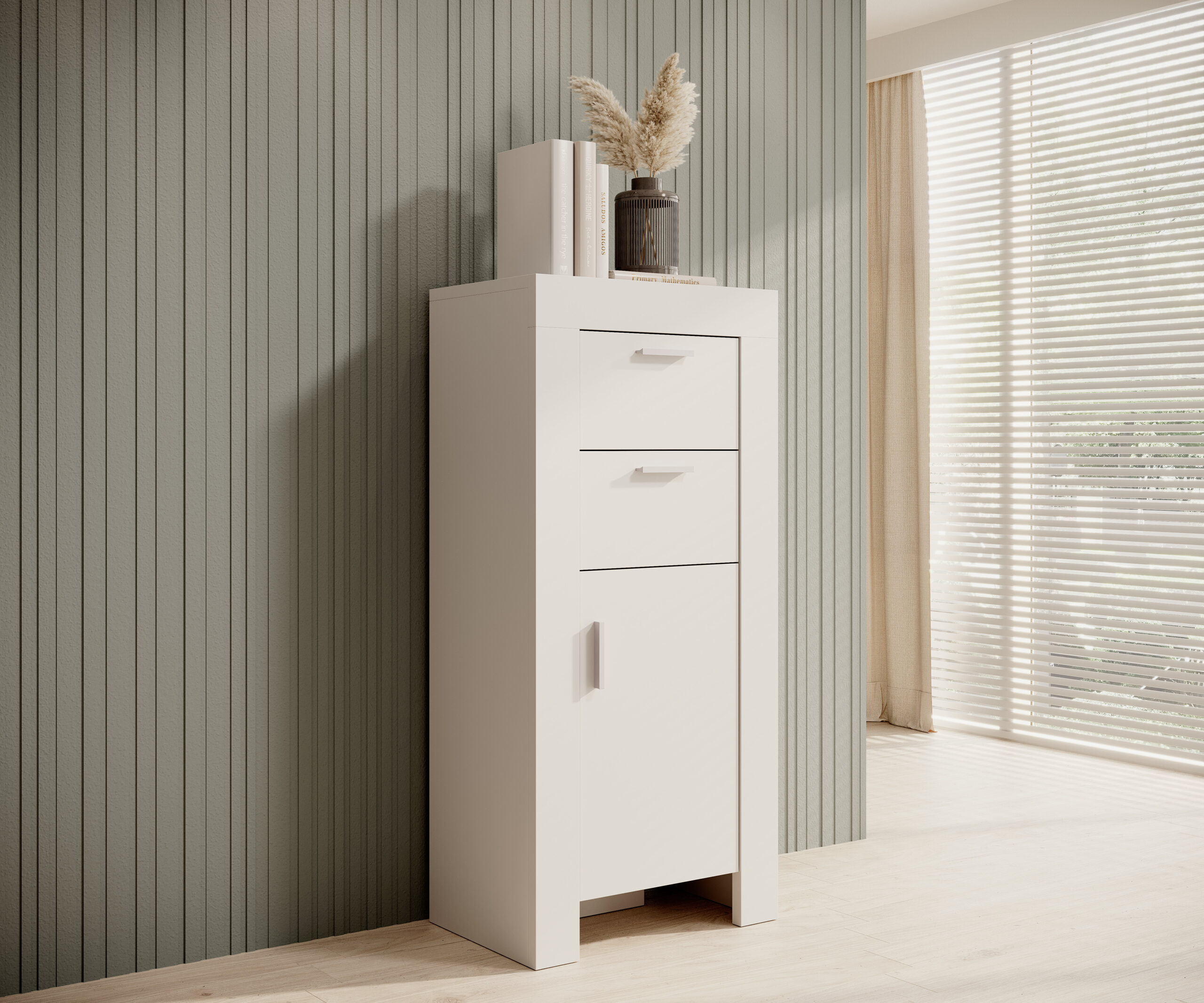 A CESIRO komód a minimalizmus és a könnyed forma tökéletes kombinációja.Három tágas fiókja lehetővé teszi a kisebb tárgyak vagy dokumentumok elrejtését, míg két szekrény a középen lévő polccal növeli a helyet. Praktikus és funkcionális, a CESIRO komód tökéletesen illik a nappaliba, a hálószobába vagy az előszobába. Arra biztatjuk, hogy ismerkedjen meg a CESIRO kollekció többi elemével, amelyeknek köszönhetően ízlésesen berendezheti otthonát.
