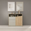A CESIRO komód a minimalizmus és a könnyed forma tökéletes kombinációja.Három tágas fiókja lehetővé teszi a kisebb tárgyak vagy dokumentumok elrejtését, míg két szekrény a középen lévő polccal növeli a helyet. Praktikus és funkcionális, a CESIRO komód tökéletesen illik a nappaliba, a hálószobába vagy az előszobába. Arra biztatjuk, hogy ismerkedjen meg a CESIRO kollekció többi elemével, amelyeknek köszönhetően ízlésesen berendezheti otthonát.