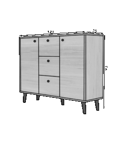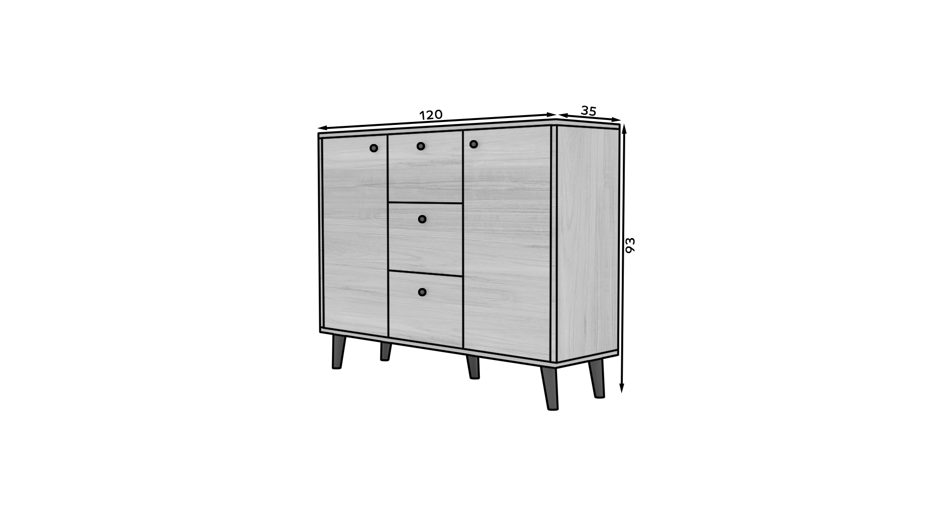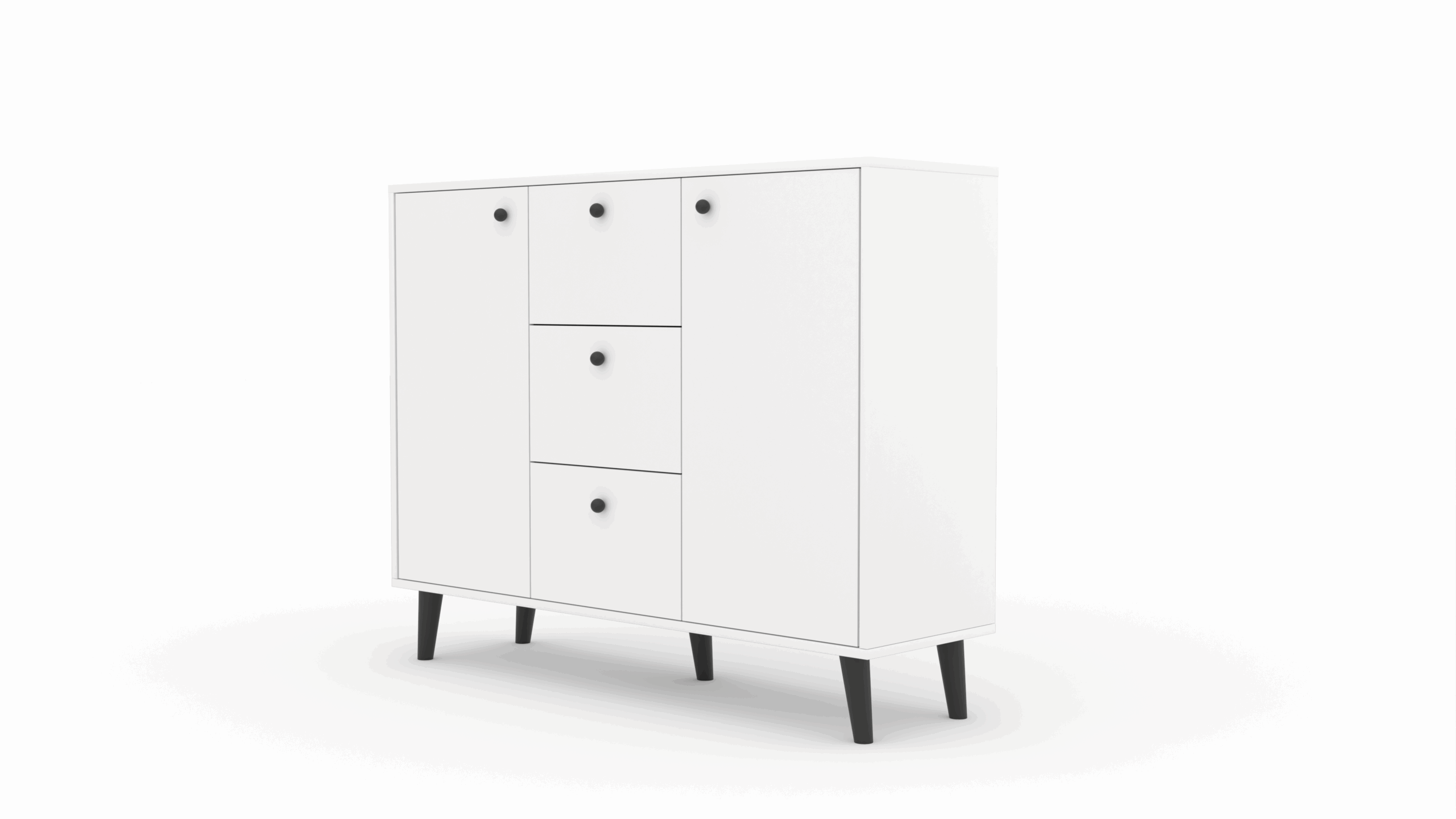 A BESA komód a minimalista design és a könnyed forma tökéletes kombinációja. A bájt a magas falábak adják hozzá, amelyeknek köszönhetően a szerkezet stabil és masszív. Három tágas fiókja lehetővé teszi, hogy kisebb tárgyakat vagy dokumentumokat rejtsen el, míg két oldalsó szekrény, középen polccal, további helyet biztosít. A BESA komód tökéletes lesz nappalijába, hálószobájába vagy előszobájába.