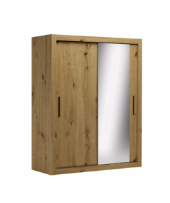 A MODI-M tolóajtós szekrény ideális megoldás a térrendezésre. A bútor tágas polcokkal és ruhák függesztésére szolgáló rúddal van felszerelve, így lehetőséged van ruháid, öltönyeid, kabátjaid vagy ingeid tárolására. A tolóajtós kialakításnak köszönhetően nem kell extra helyet szánnod az ajtók kinyitására, így tökéletes választás kis szobákba vagy keskeny előszobákba.