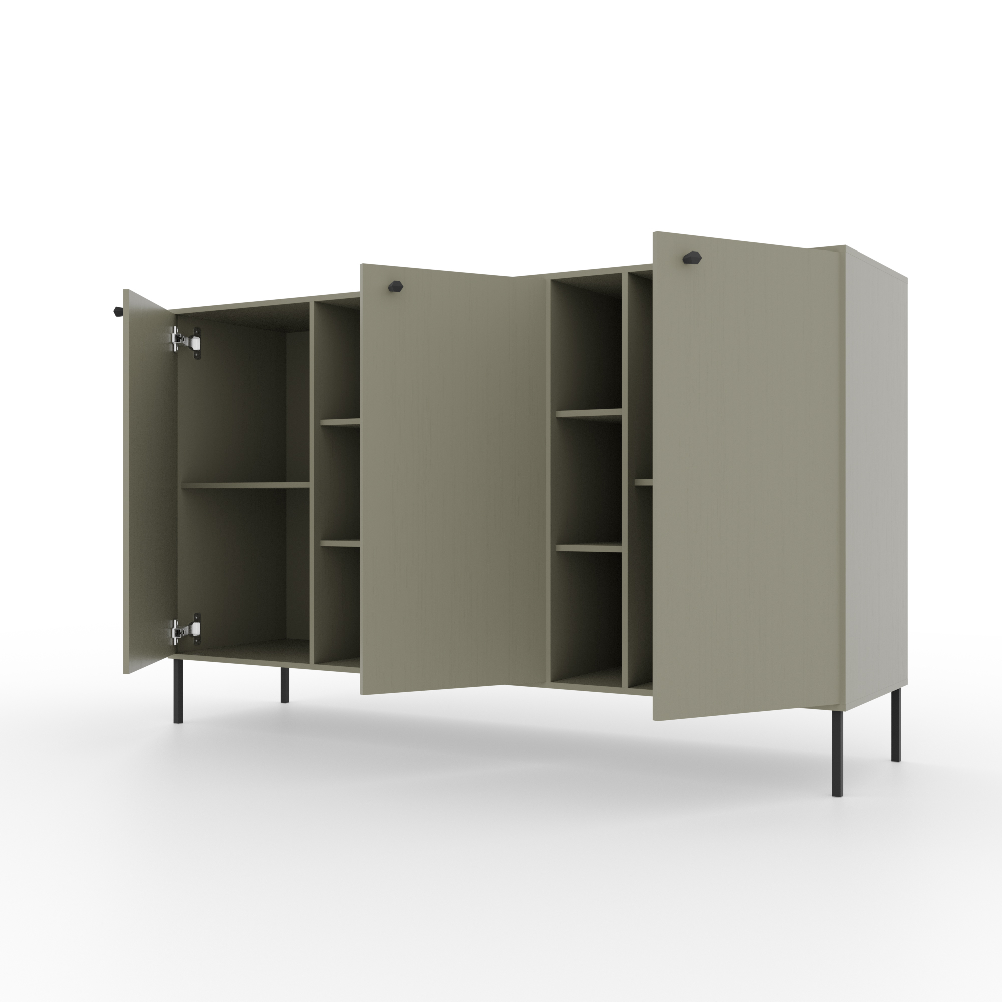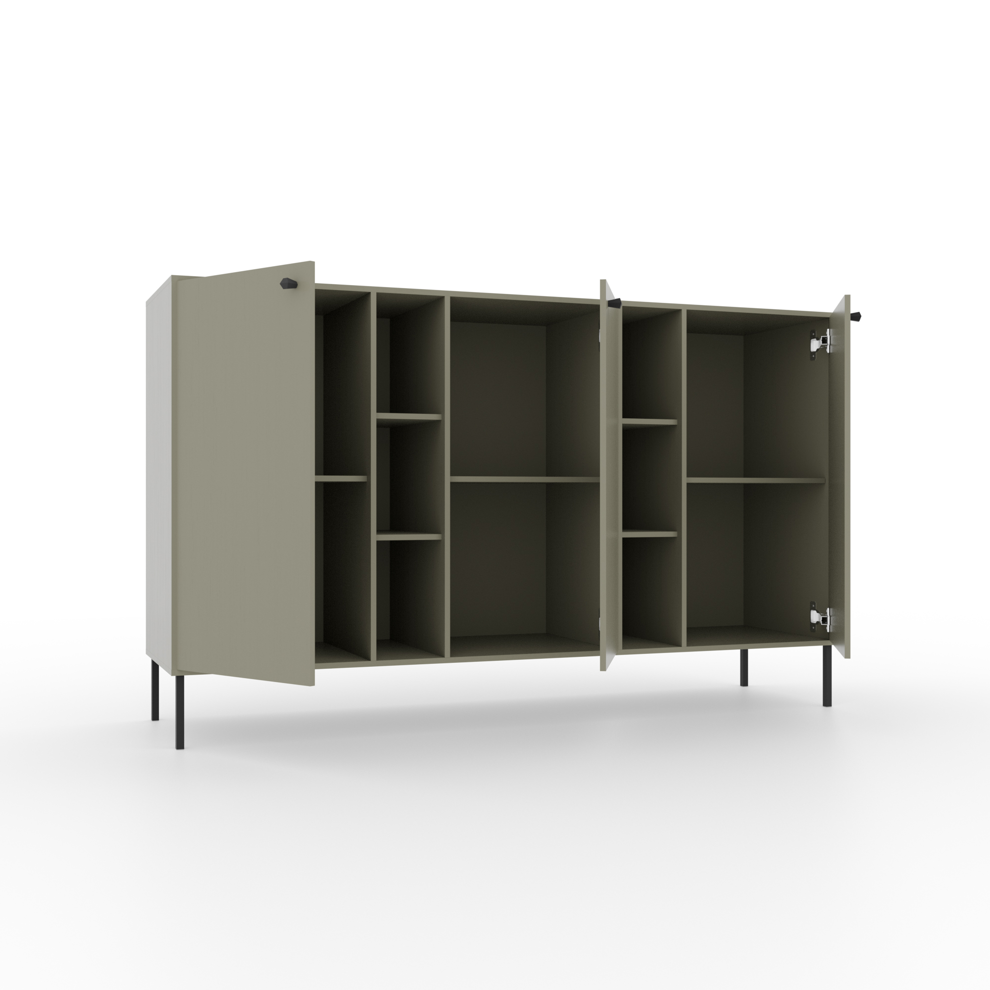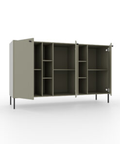 A Tili System komód egy modern bútordarab, amely átgondolt színeinek és elegáns kialakításának köszönhetően tökéletesen illeszkedik a legkülönbözőbb enteriőrökbe. Három színváltozatban kapható: **A komód a funkcionalitás és az esztétikum harmonikus kombinációja.Minden színváltozatot gondosan megterveztünk, hogy kiemelje a belső tér egyedi karakterét. A **fekete** kifinomult, modern megjelenést kölcsönöz a komódnak, amely ideális a minimalista és elegáns terekbe. A **homokbézs** melegséget és finomságot kölcsönöz, tökéletesen illeszkedik a dekoráció világos, természetes elemeihez. Másrészt az **eukaliptusz** a természet által inspirált árnyalat, amely frissességet és könnyedséget visz a belső térbe, ideális a modern és a klasszikusabb elrendezéshez egyaránt.