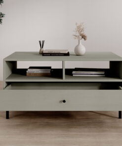 A Tili dohányzóasztal egy elegáns, modern dizájnnal rendelkező bútordarab, amely tökéletesen illeszkedik a legkülönbözőbb belső terekbe. Lapja három kifinomult színben kapható: eukaliptusz, fekete és homokbézs, így tökéletesen illeszkedik a nappali berendezéséhez. Az eukaliptusz szín egy kis természetességet és frissességet visz a belső térbe, a fekete az eleganciát és az időtlenséget hangsúlyozza, míg a homokbézs melegséget és finomságot kölcsönöz. Az asztal szerkezete kiváló minőségű anyagokból készült, biztosítva a tartósságot és a stabilitást. A Tili dohányzóasztal a funkcionalitás és az esztétika kombinációja, amely tökéletes kiegészítője a modern és a klasszikus enteriőröknek egyaránt.