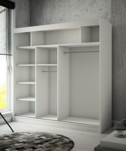 A GILTON tolóajtós szekrény tágas polcokkal és ruhaakasztóval felszerelt ideális megoldás a térrendezésre. Az elején prizmázott tükröt és díszes csíkokat helyeztek el, amelyek egyedi stílust kölcsönöznek. A tolóajtós kivitelnek köszönhetően nem szükséges plusz helyet szánni az ajtónyitásra, így kiváló megoldás kis szobák vagy keskeny előszobák számára.
