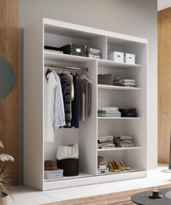 A Hannah 180 gardróbszekrény egy elegáns és funkcionális bútordarab, amely tökéletesen illik a modern belső terekbe. A 180 cm-es szélességével bőséges tárolóhelyet kínál a ruhák és kiegészítők számára. A tolóajtók kényelmes használatot és helytakarékosságot biztosítanak, így ideális választás hálószobákba, öltözőkbe vagy előszobákba. Többféle színválasztékban kapható: Kasmír – finom és elegáns szín, amely melegséget kölcsönöz a belső térnek, Fehér – klasszikus és időtlen, tökéletes világos környezetbe, Fekete – modern és elegáns, mélységet kölcsönöz a belső térnek, Fekete/Fehér – kontrasztos kombináció a dinamikus hatásért, Fehér/Fekete – a világos és sötét tónusok elegáns harmóniája. A frontok minimalista vízszintes vonalai modern jelleget kölcsönöznek, a masszív kivitelezés pedig garantálja a hosszú évekig tartó tartósságot. A **Hannah 180** gardróbszekrény az esztétika és a funkcionalitás nagyszerű kombinációja, amely a legigényesebb felhasználók elvárásainak is megfelel.