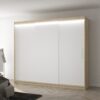 A VIKI tolóajtós tükör szekrény ideális módja a tér rendszerezésének. A bútor tágas polcokkal és ruhásszárítóval van felszerelve, ahol ruhákat, öltönyöket, külső ruhákat vagy ingeket lehet akasztani. Az elején tükör van rögzítve, amely optikailag nagyítja a teret. A tolóajtós kivitelének köszönhetően nem szükséges plusz helyet biztosítani az ajtó kinyitásához, így tökéletes megoldás kis hálószobákhoz vagy keskeny előszobákhoz. Érdekes előnye az esztétikus LED világítás, amely varázslatos bájt kölcsönöz mind a szekrénynek, mind a helyiségnek.