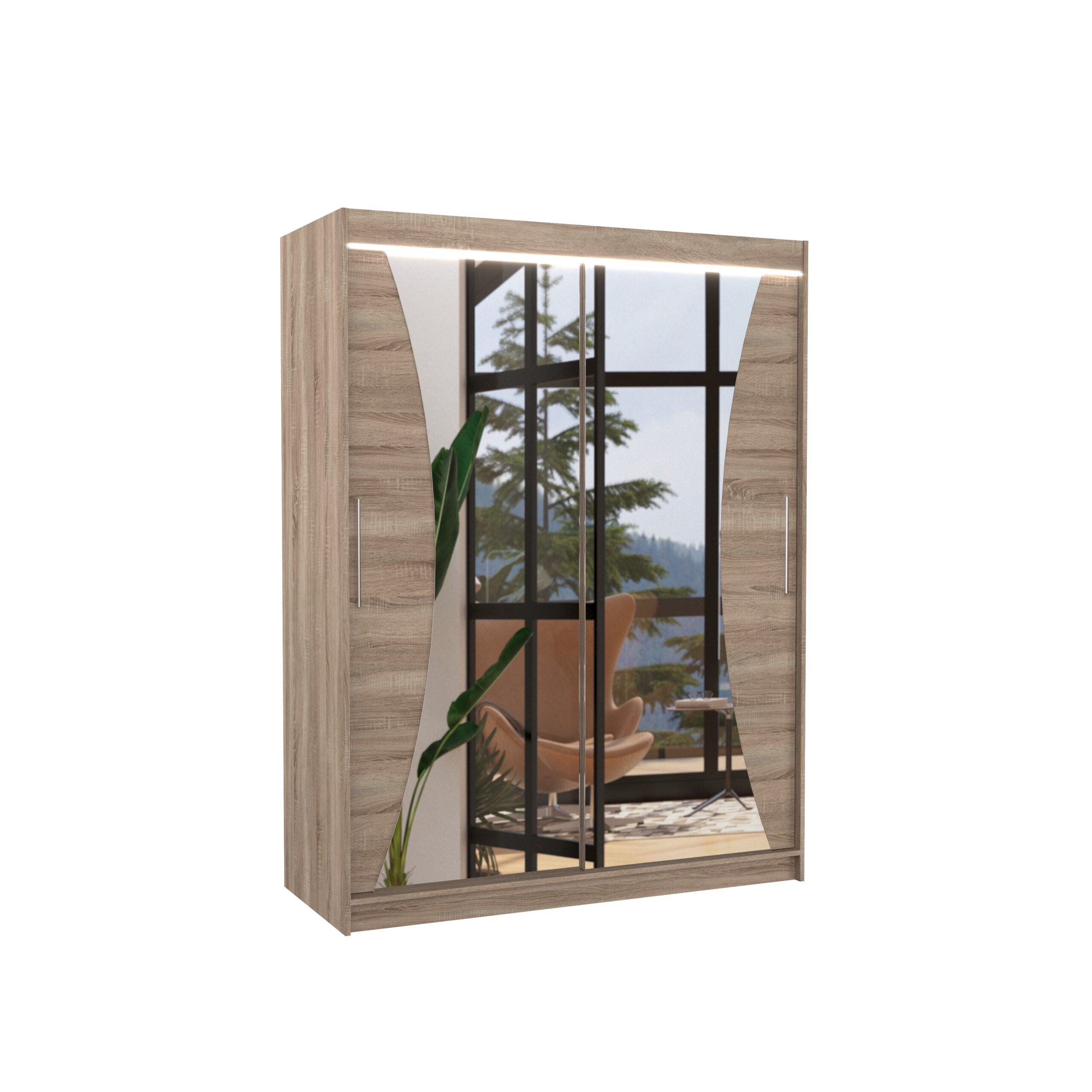 A MAX tolóajtós szekrény tükörrel ideális megoldás a tér rendezésére. A bútor tágas polcokkal és ruhásszárítóval van felszerelve, ahol fel tudod akasztani ruháidat, öltönyeidet, kültéri ruházatodat vagy ingeidet. Az előlapon egy tükröt helyeztek el, amely optikailag nagyobbítja a teret. A tolóajtós kialakításnak köszönhetően nem kell plusz helyet szánnod az ajtók kinyitására, így tökéletes megoldás kis hálószobákba vagy keskeny előszobákba. Érdekes előnye az effektív LED világítás, ami varázslatos hangulatot kölcsönöz a szekrénynek és a helyiségnek egyaránt.